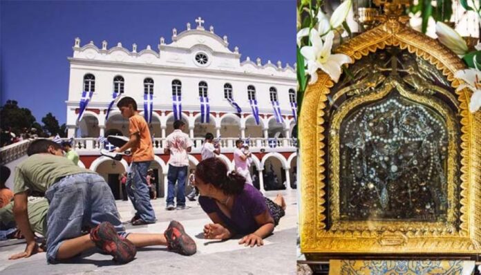 Μια ασθενής γιαγιά, πήγαινε στην Παναγία στην Τήνο κάθε χρόνο. Πολλοί που την έβλεπαν στην Τήνο, μια μέρα την πλησίασαν και την ρώτησαν: