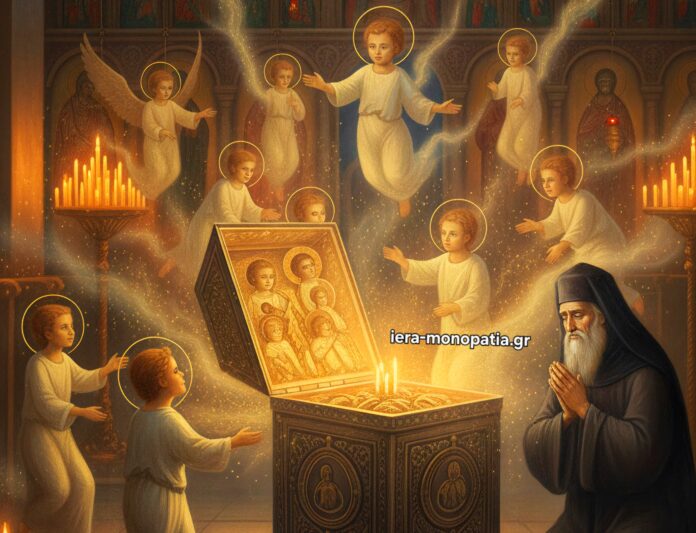 ​Ο μοναχός ένιωσε μια απέραντη χαρά, αντιλαμβανόμενος ότι τα πνεύματα των νηπίων “έπαιζαν” και αγάλλονταν μέσα στον οίκο του Θεού.