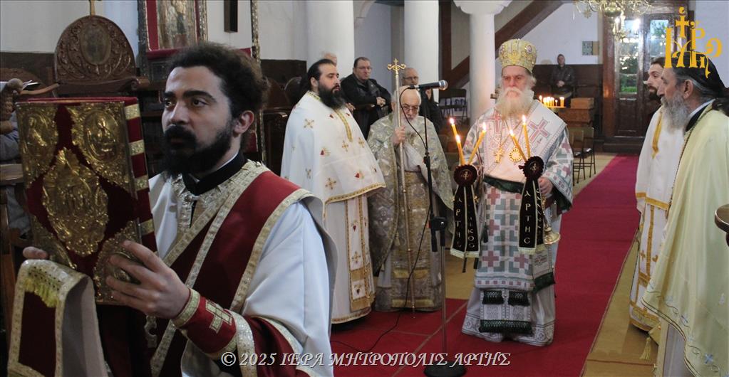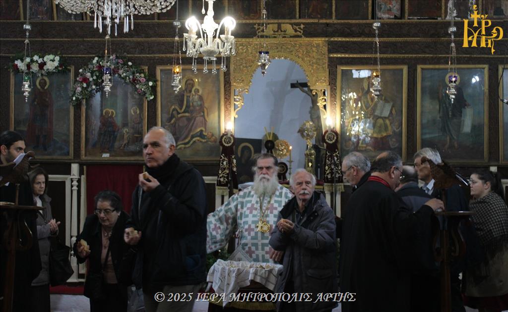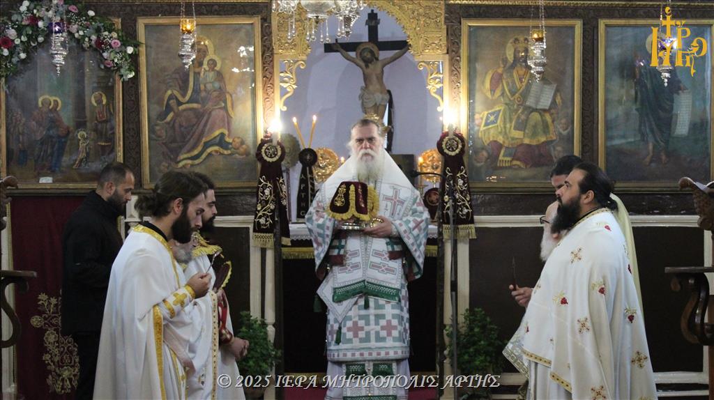 Της Ιεράς Ακολουθίας προεξήρχε ο Μητροπολίτης Άρτης κ. Καλλίνικος, πλαισιωμένος από Κληρικούς και πλήθος πιστών που συγκεντρώθηκαν για να τιμήσουν τη μνήμη του Αγίου.