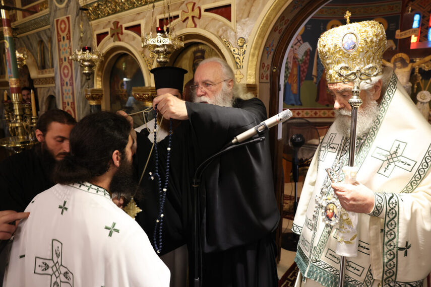 Την Τρίτη 3η Σεπτεμβρίου ανήμερα της εορτής της ανακομιδής των ιερών λειψάνων του Αγίου Νεκταρίου, αλλά και της μνήμης του Οσίου Θεοκτίστου, ημέρα κατά την οποία άγει τα ονομαστήριά του, ο Ποιμενάρχης, προεξήρχε της Θείας Λειτουργίας πλαισιούμενος από ιερείς της Ιεράς Μητροπόλεως, στο ομώνυμο γυναικείο Ιερό Ησυχαστήριο που εορτάζει, όπου κατά τη διάρκεια της Θείας Λειτουργίας, ετελέσθη η εις Πρεσβύτερον Χειροτονία και η εις Αρχιμανδρίτην Χειροθεσία του Ιεροδιακόνου Λογγίνου Μονογυιού, φοιτητού της Θεολογικής Σχολής Ε.Κ.Π.Α.