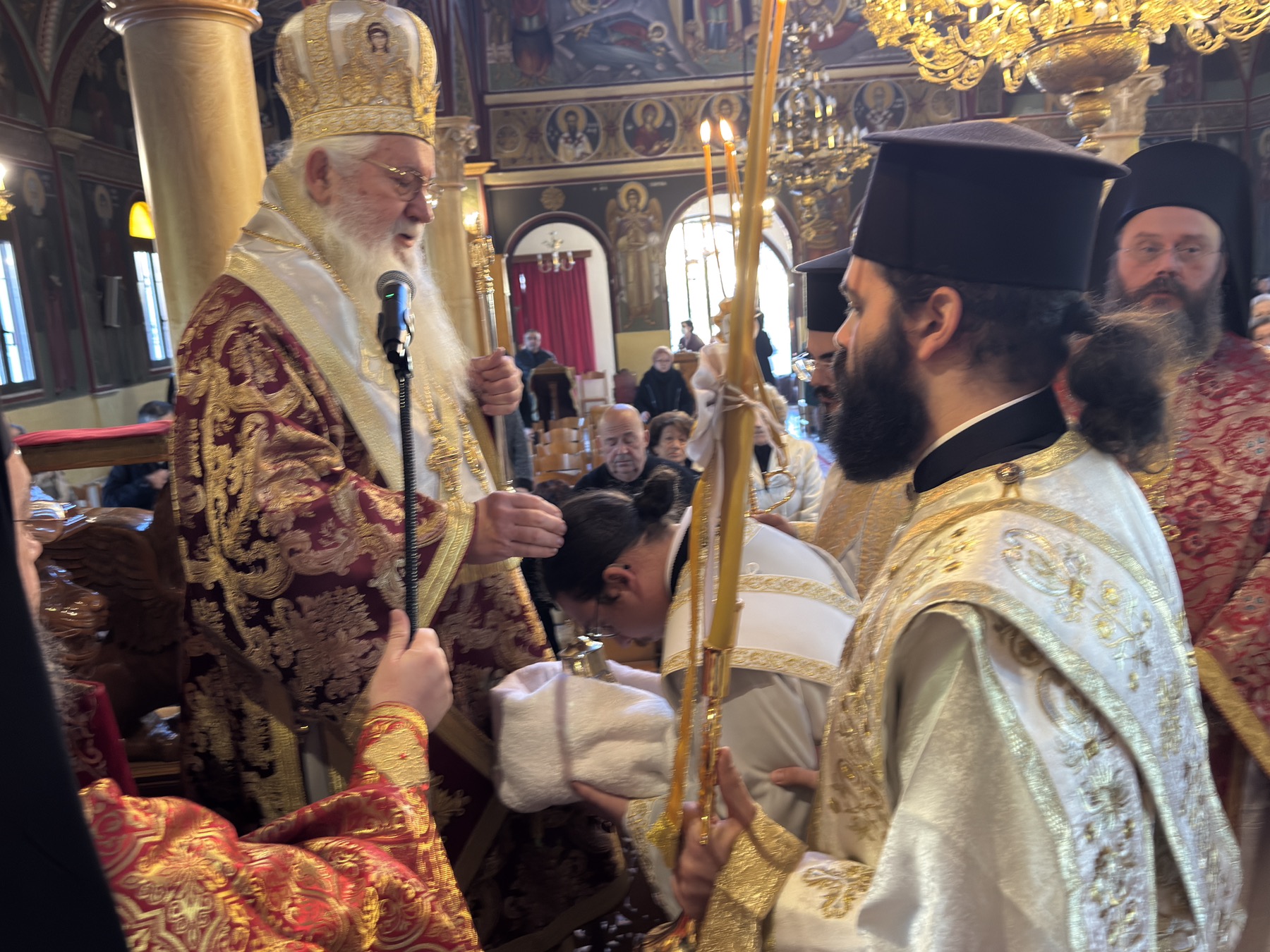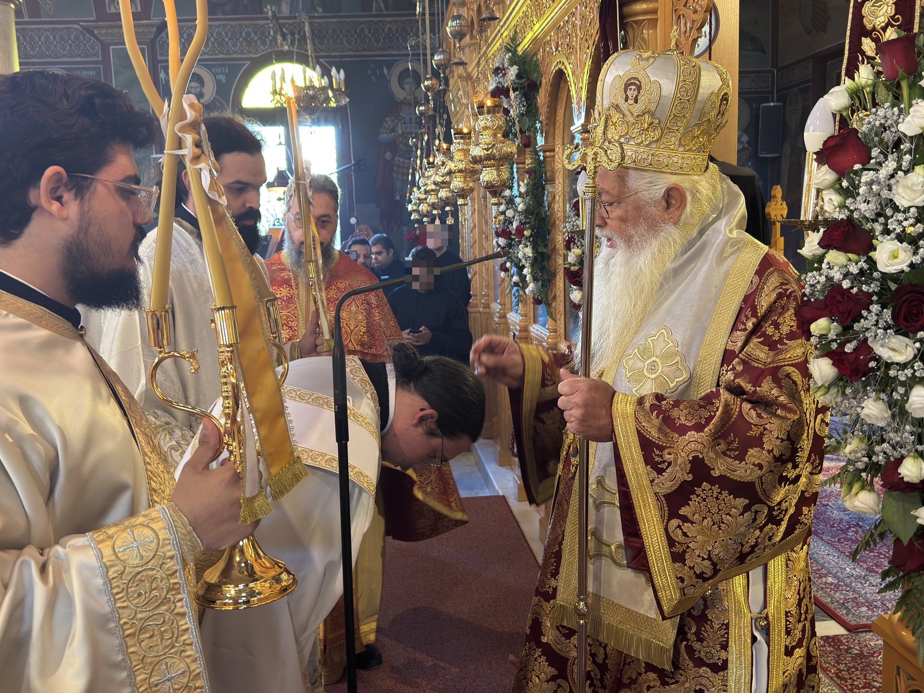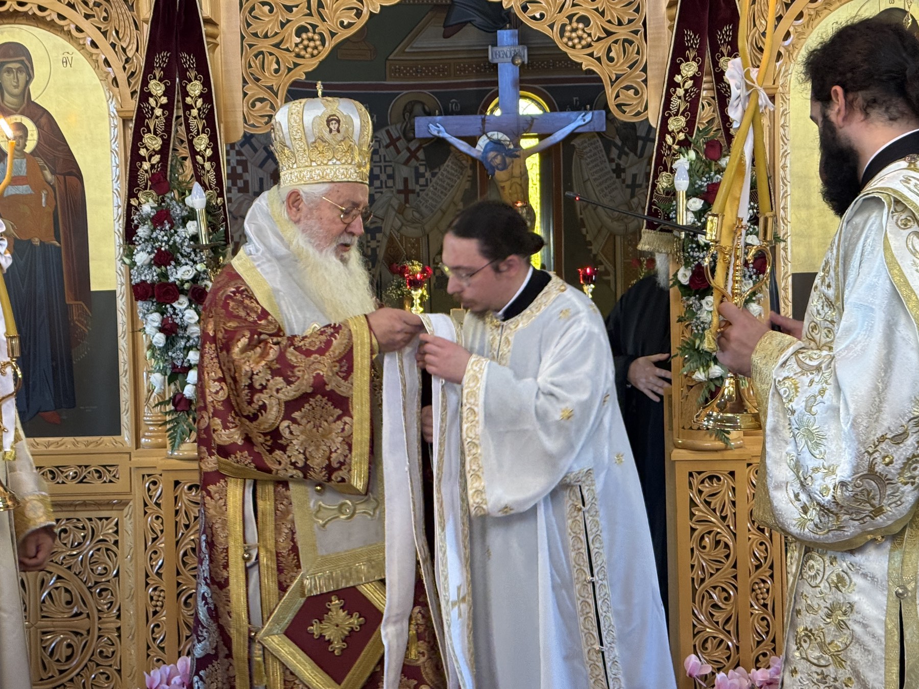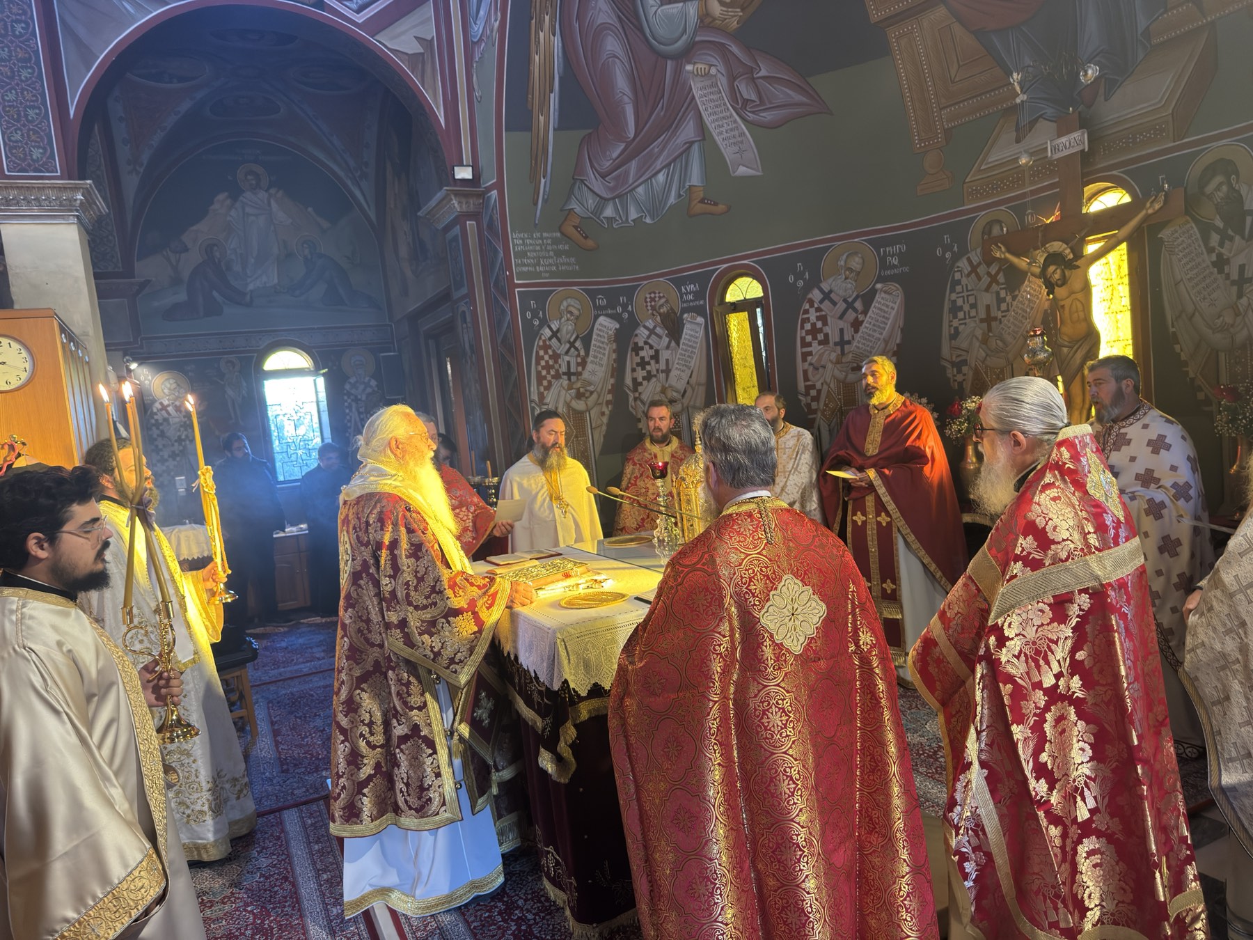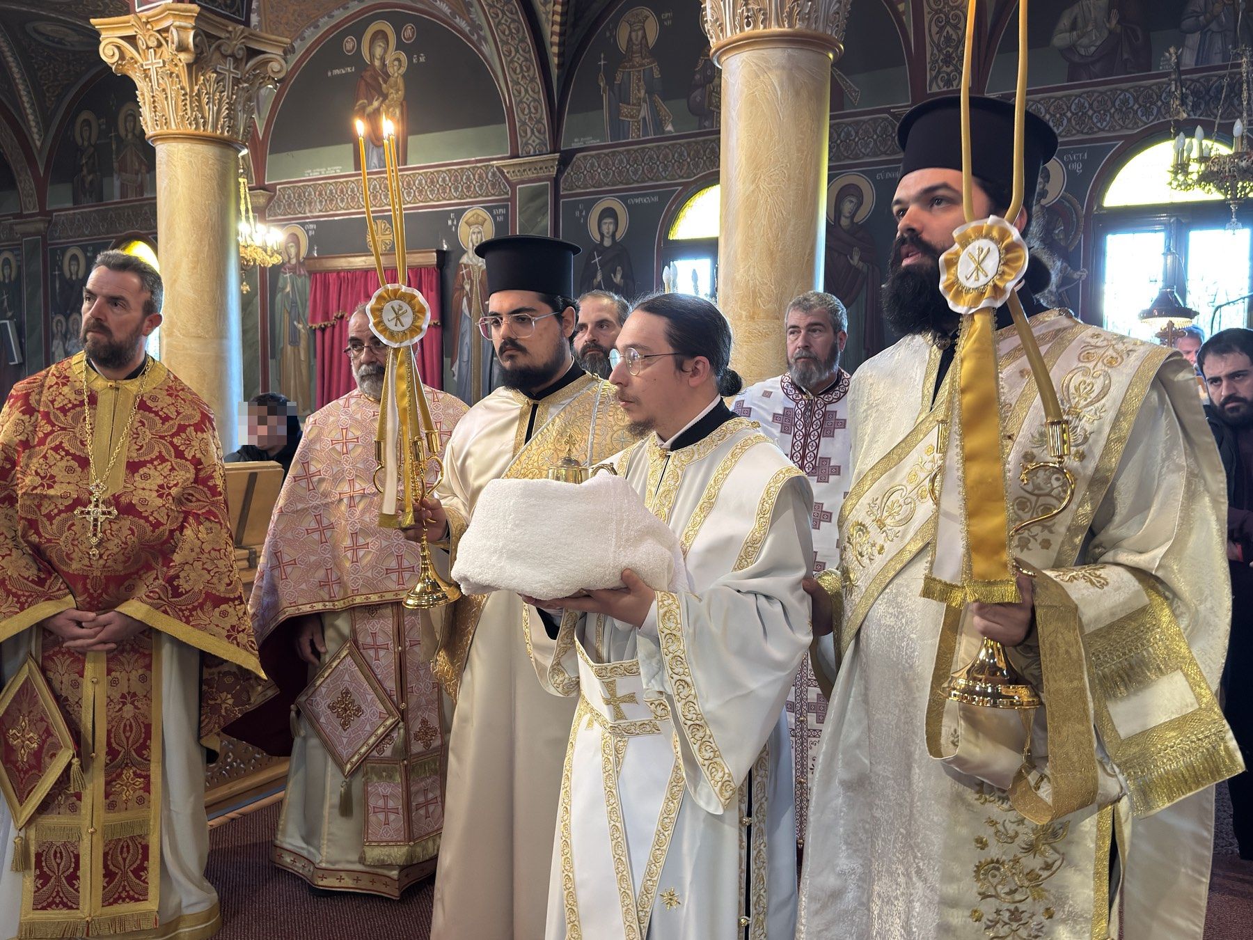 Τη Θεία Λειτουργία τέλεσε ο Μητροπολίτης Θηβών, Λεβαδείας και Αυλίδος κ. Γεώργιος, ο οποίος, στο πλαίσιο της εορτής, προχώρησε και στη χειροτονία σε Διάκονο του μοναχού π. Αμφιλοχίου Μάρρου, ο οποίος σπουδάζει στη Σχολή Μαθητείας Υποψηφίων Κληρικών Βελλάς Ιωαννίνων.