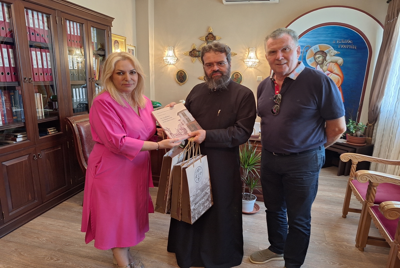 Τέλος τους ευχήθηκε υγεία και επιτυχία στο ευθυνοφόρο έργο τους, προσφέροντάς τους αντίτυπα των εκδόσεων της Ιεράς Μητροπόλεως.