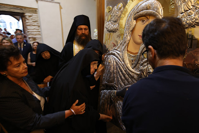 Μετά την τελετή των θυρανοιξίων, ακολούθησε η ενθρόνιση της ιεράς εικόνος της Παναγίας της Βαρνακόβης, της νέας εικόνας η οποία αγιογραφήθηκε με μέριμνα του Σεβ. Ποιμενάρχου μας, μετά από την ολοκληρωτική καταστροφή που υπέστη η Ιερά Μονή από τις δυο πυρκαϊές του 2017 και 2020.