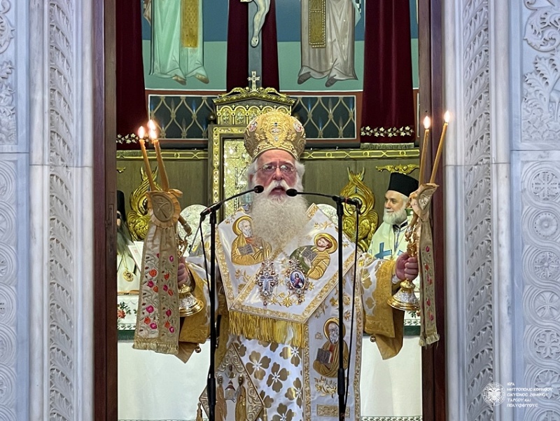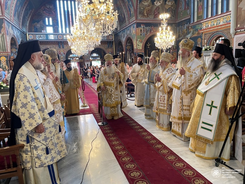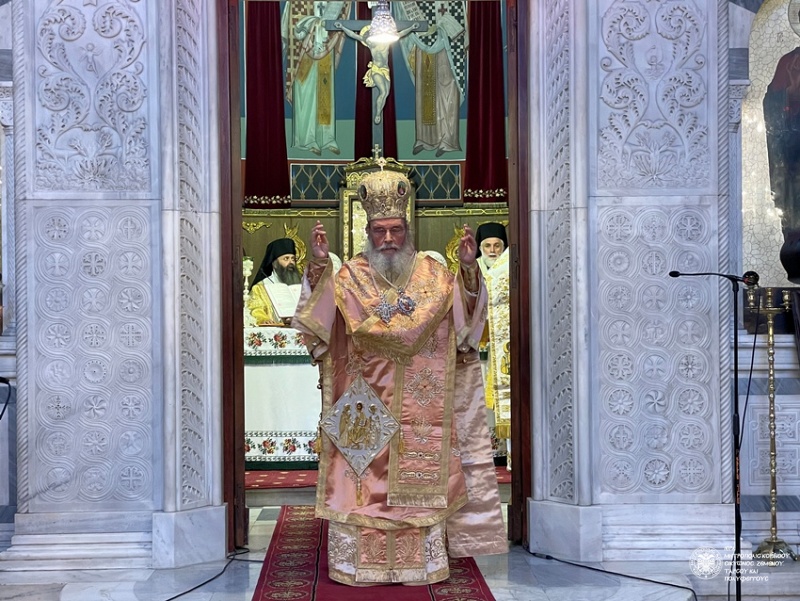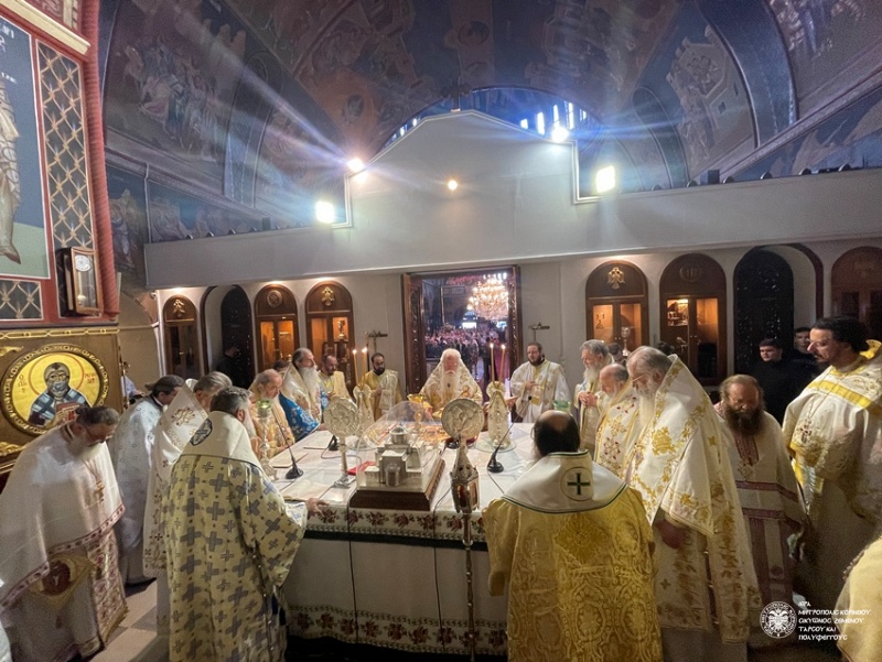 Πλήθος πιστών είχε συγκεντρωθεί από νωρίς στον Ιερό Ναό, συμμετέχοντας θερμά τόσο στον Όρθρο, τον οποίο τέλεσε ο Μητροπολίτης Πειραιώς κ. Σεραφείμ, όσο και στη Θεία Λειτουργία που ακολούθησε προεξάρχοντος του Μητροπολίτου Δημητριάδος και Αλμυρού κ. Ιγνατίου. Συλλειτούργησαν επίσης οι Μητροπολίτες Χαλκίδος κ. Χρυσόστομος, Ζιχνών και Νευροκοπίου κ. Ιερόθεος, Πειραιώς κ. Σεραφείμ, Γρεβενών κ. Δαβίδ, Γόρτυνος και Μεγαλοπόλεως κ. Νικηφόρος, Μαντινείας και Κυνουρίας κ. Επιφάνιος, καθώς και οι Επίσκοποι Σκοπέλου κ. Νικόδημος και Κεγχρεών κ. Αγάπιος, ο οποίος είναι και Πρωτοσύγκελλος της τοπικής Μητροπόλεως.