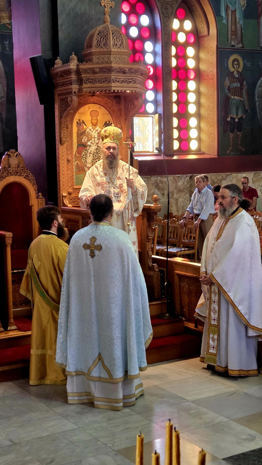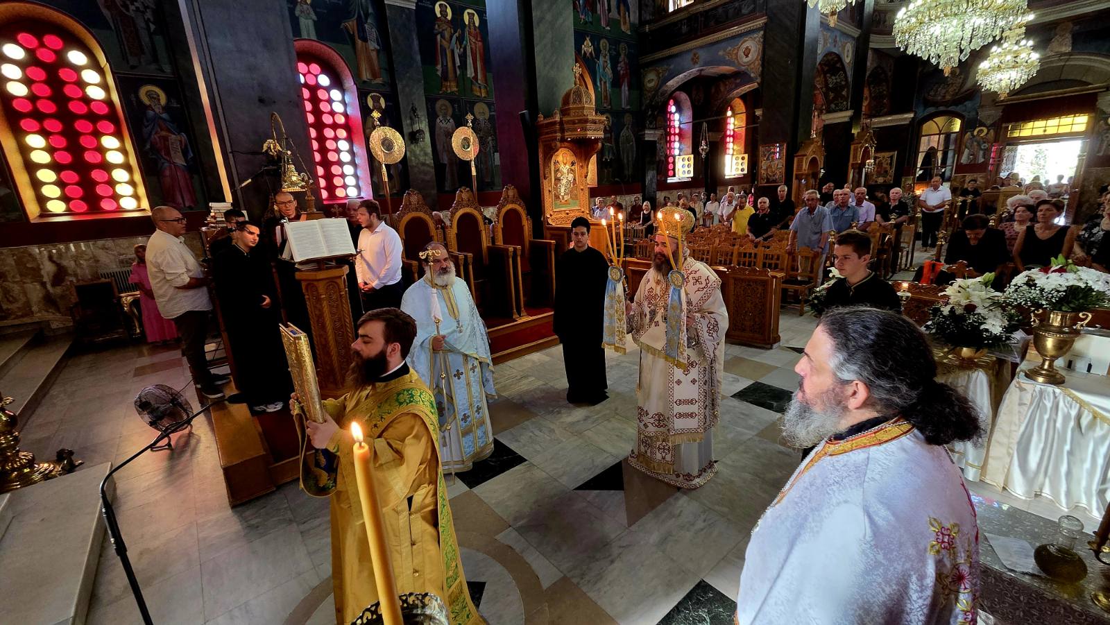 Στον Μητροπολιτικό Ναό του Αγίου Νικολάου στην Αλεξανδρούπολη συγκεντρώθηκαν πλήθος πιστών για να συμμετάσχουν στη Θεία Λειτουργία της Κυριακής 31 Αυγούστου, ημέρας κατά την οποία η Εκκλησία τιμά την Κατάθεση της Τιμίας Ζώνης της Θεοτόκου. Την ακολουθία τέλεσε ο Μητροπολίτης Φλωρίνης, Πρεσπών και Εορδαίας κ. Ειρηναίος, ο οποίος βρέθηκε στην πόλη με την άδεια και την ευλογία του τοπικού Μητροπολίτη κ. Ανθίμου. Δίπλα του στο ιερό στάθηκαν οι εφημέριοι του Ναού, ενώ οι παρευρισκόμενοι, με σεβασμό και ευλάβεια, προσήλθαν να τιμήσουν την Παναγία και να αντλήσουν δύναμη από τη συμμετοχή τους στο Μυστήριο.