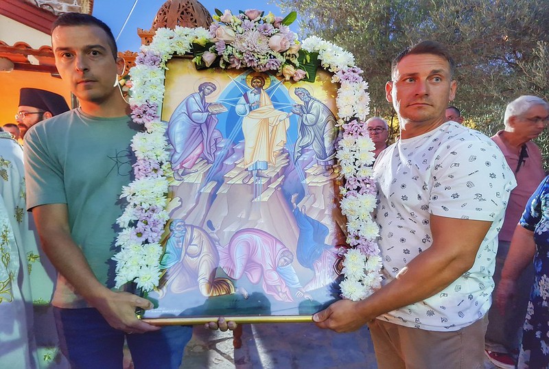 Την προηγούμενη ημέρα, το απόγευμα της Τρίτης 5 Αυγούστου, ο ίδιος χοροστάτησε στον πανηγυρικό Εσπερινό στον ίδιο ναό, παρουσία πλήθους πιστών και τοπικών αρχών. Ακολούθησε Λιτανεία της Ιερής Εικόνας της Μεταμορφώσεως στους δρόμους της περιοχής, με τη συμμετοχή του λαού, σε ατμόσφαιρα ευλάβειας και κατάνυξης.