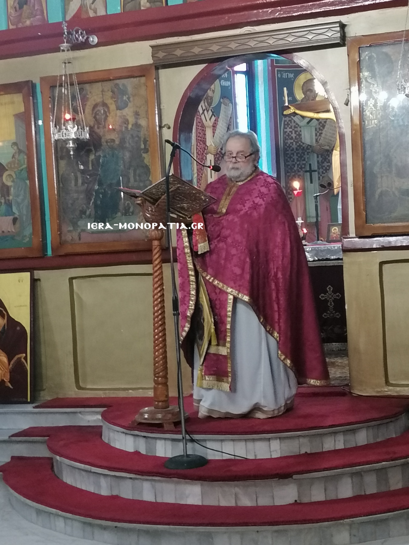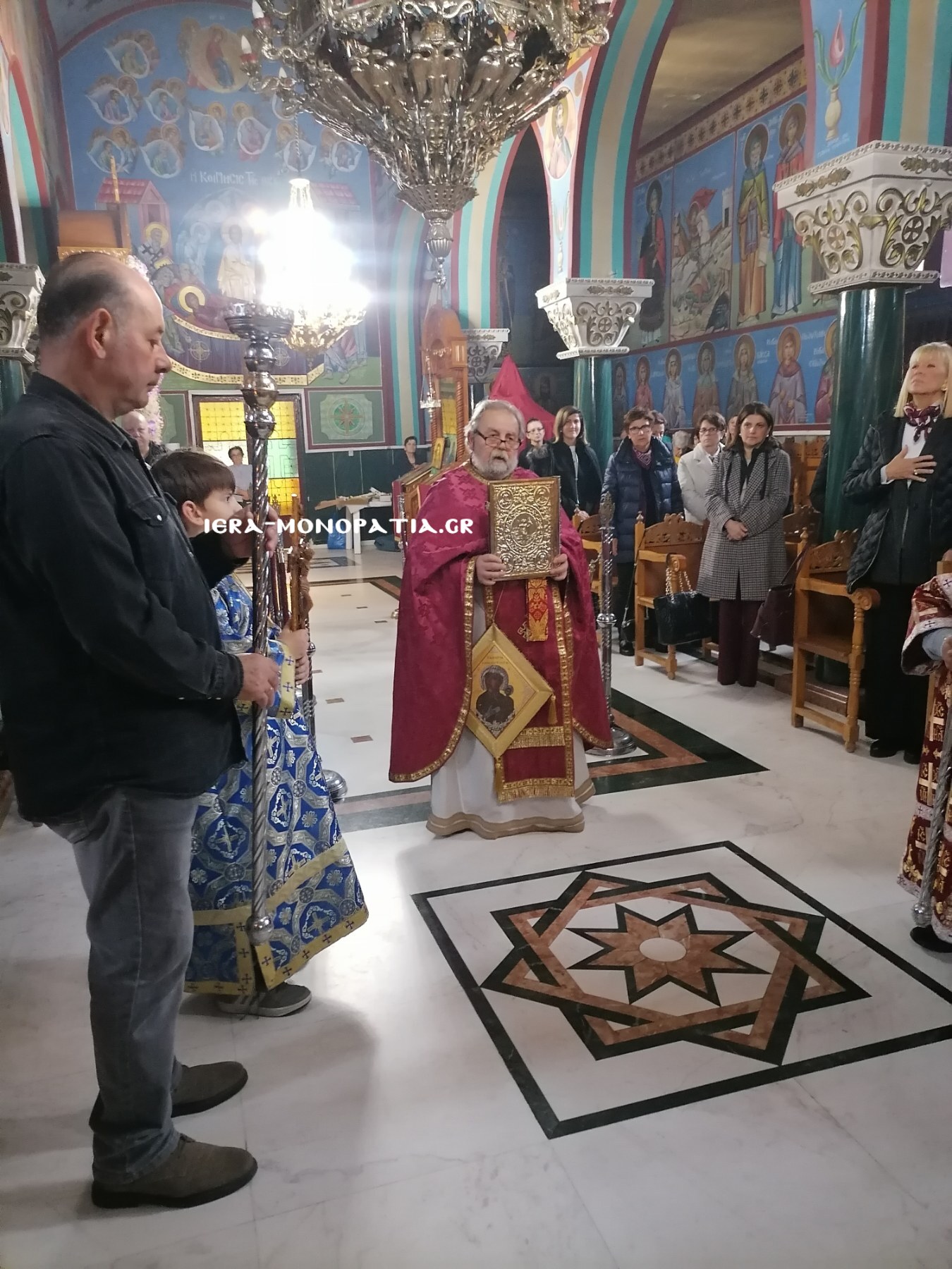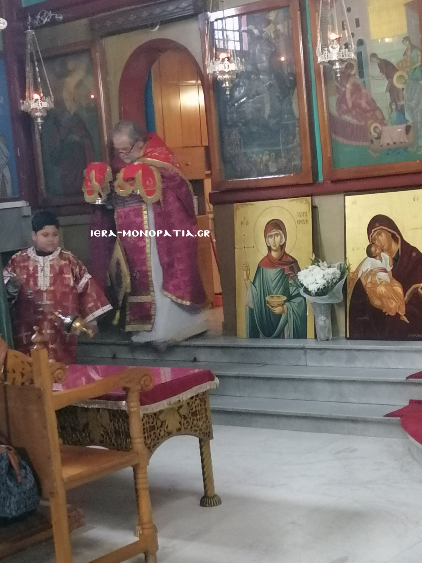 Πριν την απόλυση τελέστηκε Αρτοκλασία, υπέρ υγείας και ευλογίας των πιστών και των οικογενειών τους. Της ιεράς ακολουθίας προεξήρχε ο εφημέριος του Ναού, π. Αθανάσιος Πουλέντσης, ο οποίος στο σύντομο κήρυγμά του αναφέρθηκε στο βαθύ νόημα της εορτής, τονίζοντας την υπακοή, την καθαρότητα και την αφιέρωση της Παναγίας στον Θεό από τριετής ηλικίας.