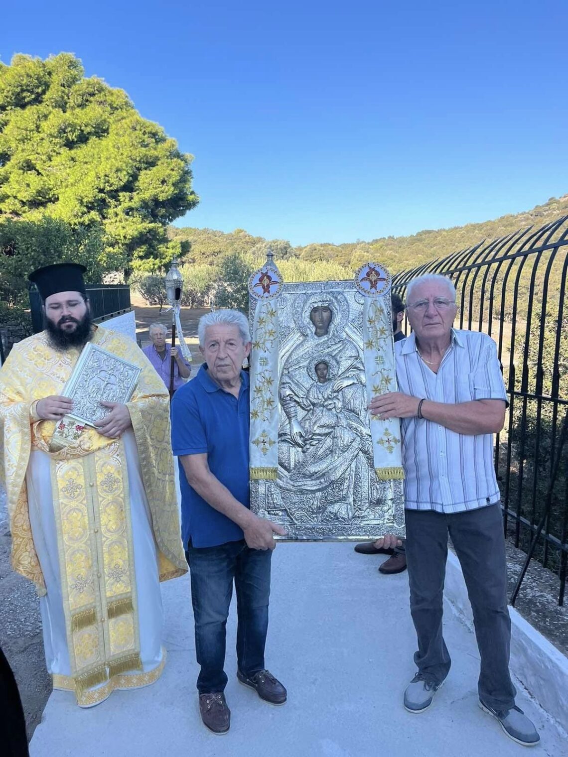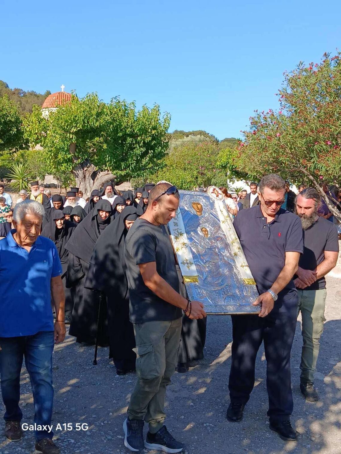 Η Λιτανεία της Θαυματουργού Εικόνας της Παναγίας μας, που ακολούθησε, αποτέλεσε ένα ταξίδι πίστης γύρω από την Ιερά Μονή. Οι καρδιές όλων στρέφονταν προς τον ουρανό, με την ελπίδα ότι οι ικέτιες δεήσεις θα επιφέρουν τη λύση του προβλήματος της ανομβρίας που ταλαιπωρεί την περιοχή.