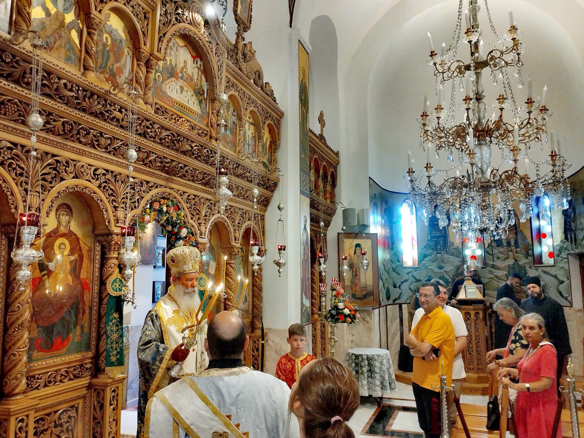 Μετά την ολοκλήρωση της Θείας Λειτουργίας, προσφέρθηκε παραδοσιακό κέρασμα στο αρχονταρίκι του Ναού, όπου ο Μητροπολίτης Ύδρας, Σπετσών και Αιγίνης κ. Εφραίμ είχε μια εγκάρδια συζήτηση με τους παρευρισκόμενους.