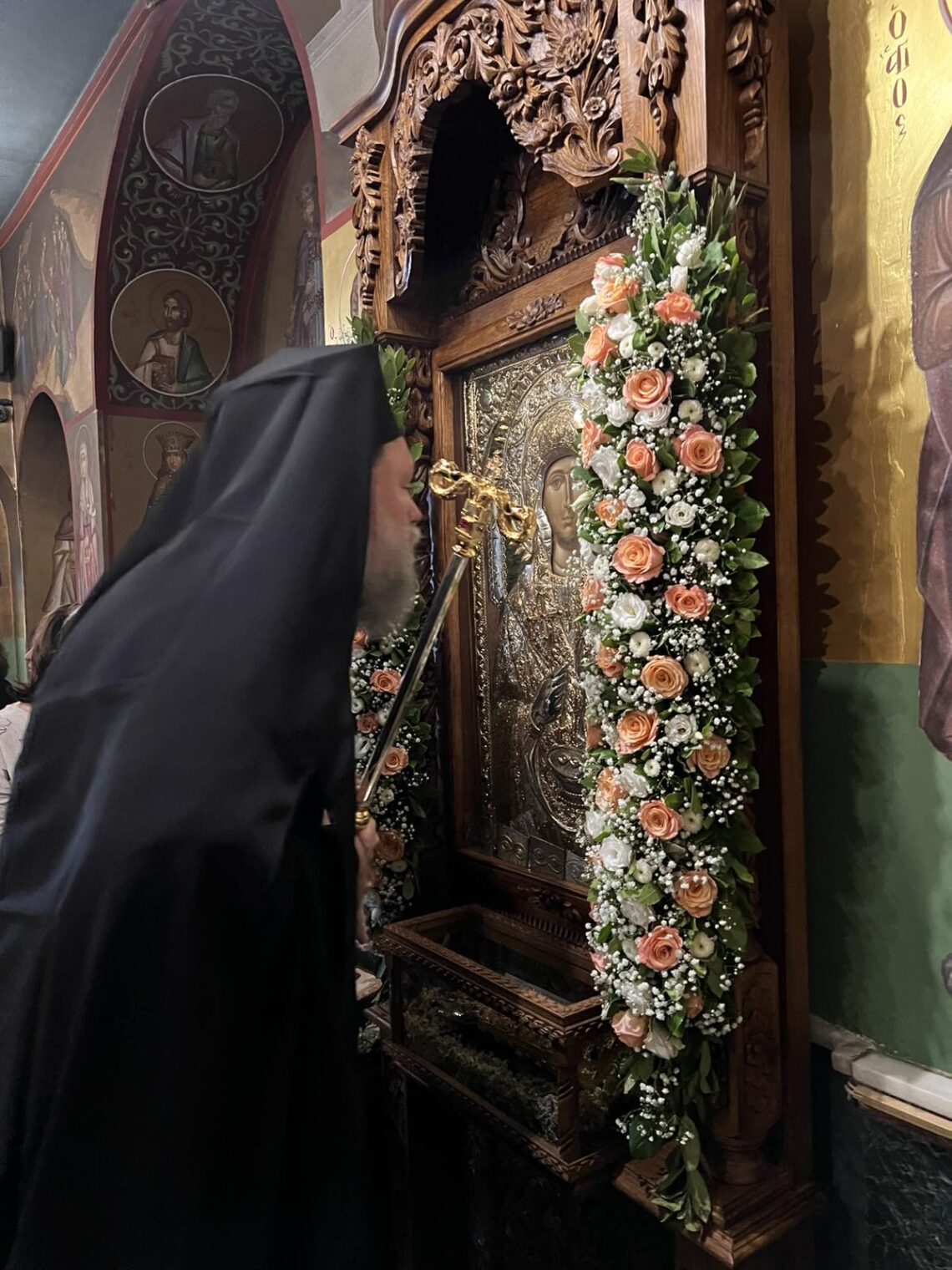 Κατά το Κοινωνικό, ο Σεβασμιώτατος αναφέρθηκε στην ακλόνητη πίστη και τον αγωνιστικό χαρακτήρα της Αγίας Παρασκευής, υπογραμμίζοντας την αφοσίωσή της στο Ευαγγέλιο και τη ζωντανή της παρουσία στη ζωή των πιστών. Την παρουσίασε ως φωτεινό πρότυπο χριστιανικής αρετής και θάρρους μέσα σε δύσκολες εποχές.