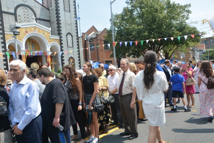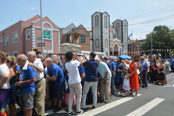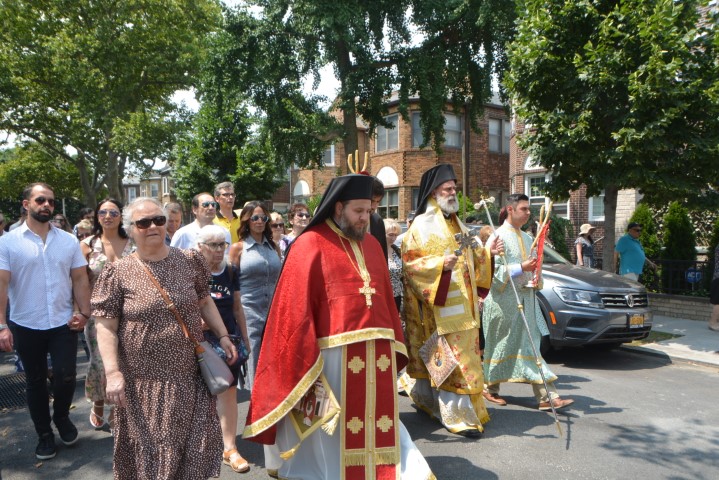 Η λιτανεία ξεκίνησε από τον ναό, κινήθηκε Βόρεια της 37ης Οδού και συνέχισε Ανατολικά επί της Λεωφόρου Ντίτμαρς. Στο ύψος της 33ης Οδού κινήθηκε Νότια και έκανε μια στάση στο προαύλιο των Αγίων Αικατερίνης και Γεωργίου και κατέληξε στο προαύλιο της Αγίας Ειρήνης όπου είχαν συγκεντρωθεί ομογενείς όλων των ηλικιών, οι οποίοι γονυπετείς ανέμεναν την Θαυματουργό Εικόνα και τα λείψανα και προσευχήθηκαν στην Αγία Ειρήνη όπως χαρίζει υγεία στους ιδίους, στους οικείους και στους φίλους τους.