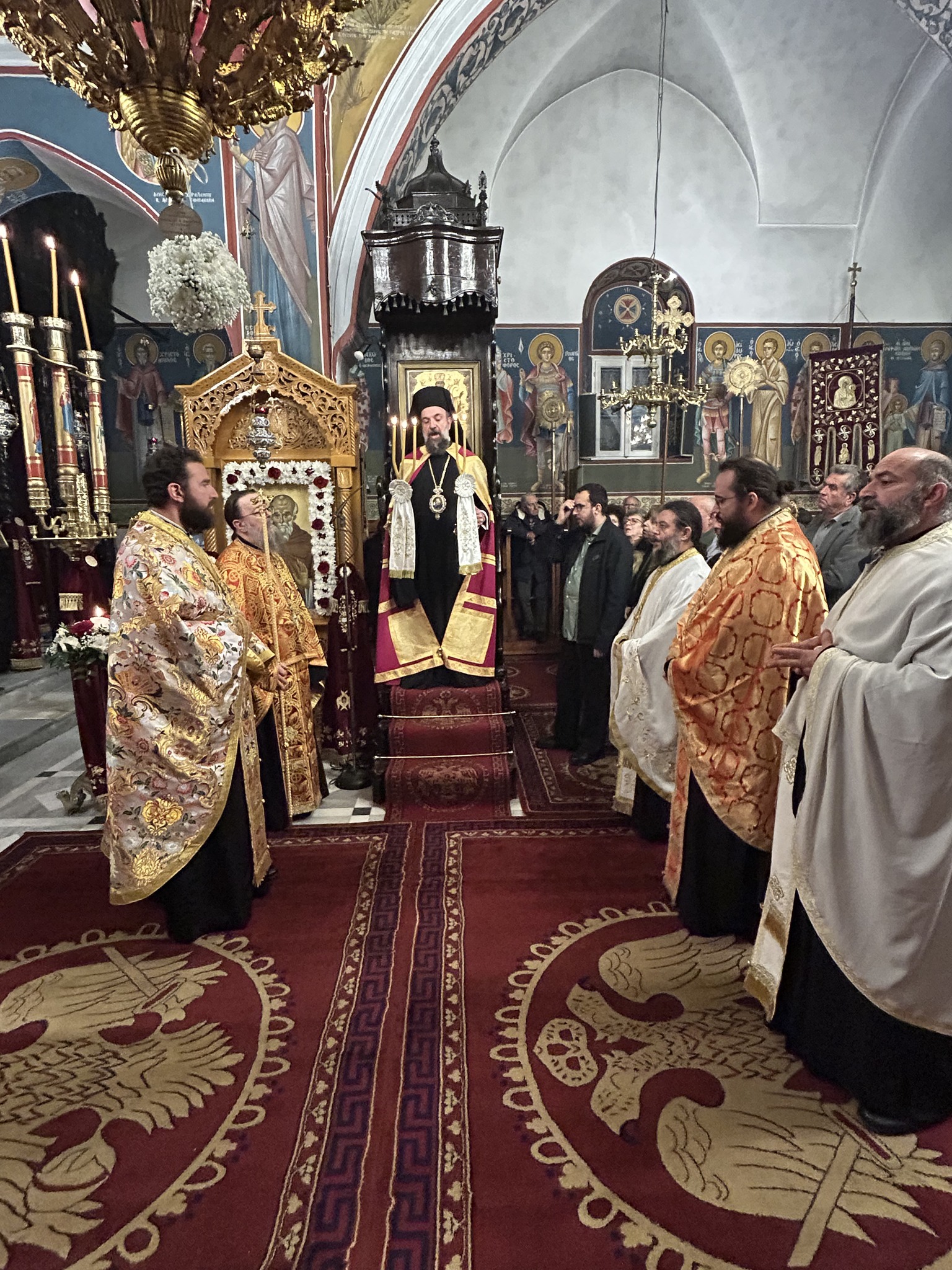 Νωρίτερα, ο Σεβασμιώτατος είχε χοροστατήσει τόσο στον πανηγυρικό Εσπερινό όσο και στον Όρθρο, ενώ στο σύντομο μήνυμά του προς τους πιστούς στάθηκε στο πρόσωπο της Αγίας Άννης. Υπογράμμισε ότι μέσα από την πορεία και τη γενεαλογία των προγόνων του Χριστού αποκαλύπτεται το σχέδιο του Θεού, το οποίο πραγματοποιείται μέσω της πίστης, της απλότητας, της ταπείνωσης και της απόλυτης εμπιστοσύνης στο Θείο Θέλημα.