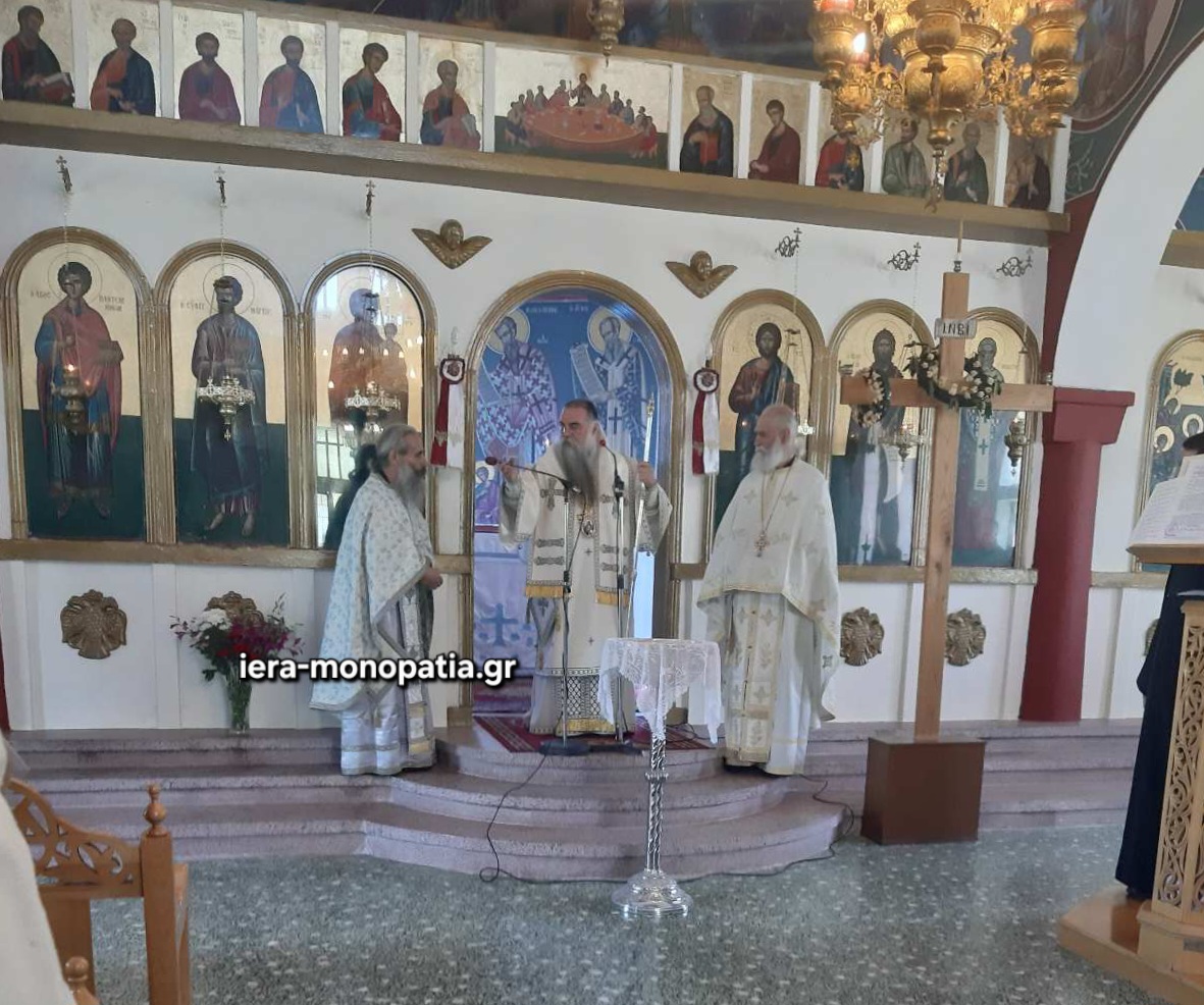 Της πανηγυρικής Θείας Λειτουργίας προεξήρχε ο Θεοφιλέστατος Επίσκοπος Αλμωπίας κ. Στέφανος, πλαισιούμενος από ιερείς της περιοχής,