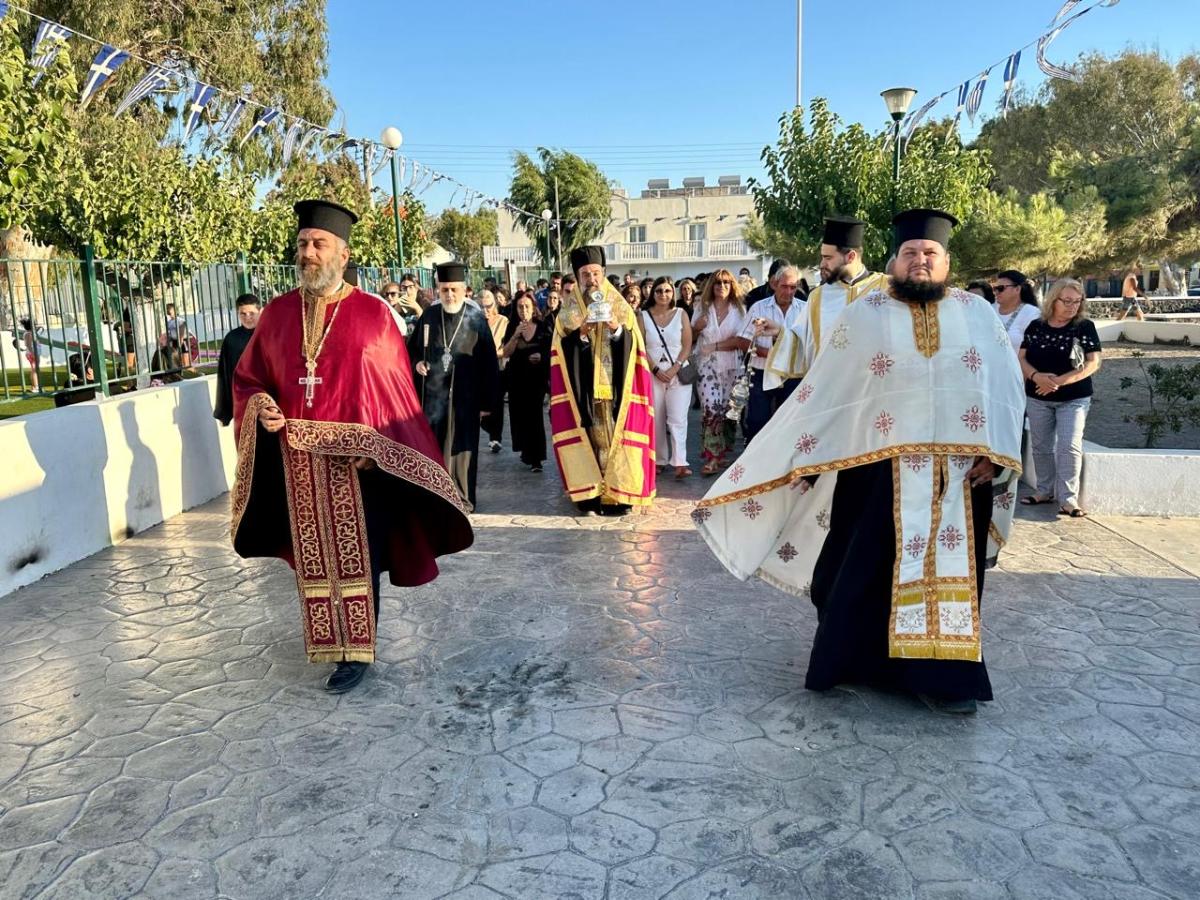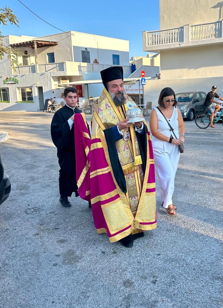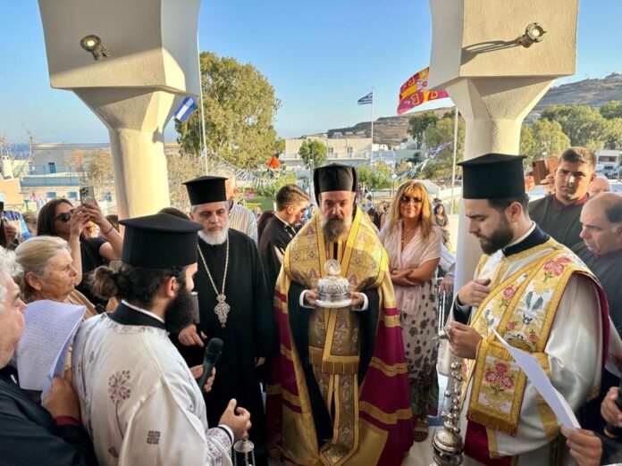 Η κομιδή του ιερού κειμηλίου από τον Σεβασμιώτατο Μητροπολίτη Θήρας, Αμοργού και Νήσων κ. Αμφιλόχιο αποτέλεσε κορυφαίο γεγονός για την τοπική εκκλησιαστική κοινότητα.