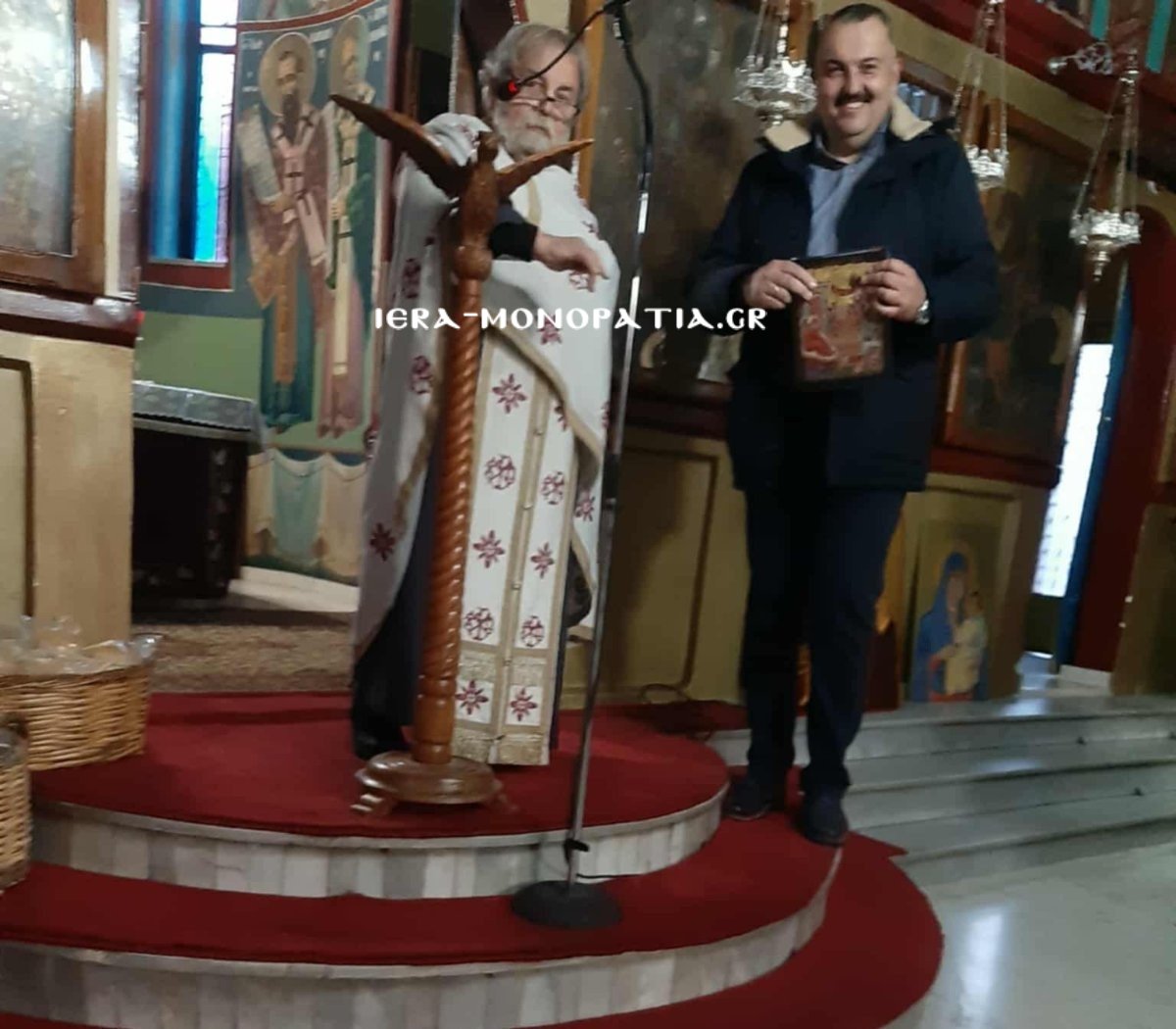Τιμητική διάκριση στον Ανέστη Δοβλέτη από τον εφημέριο του Ναού της Παναγίας της Μηλιώτισσας