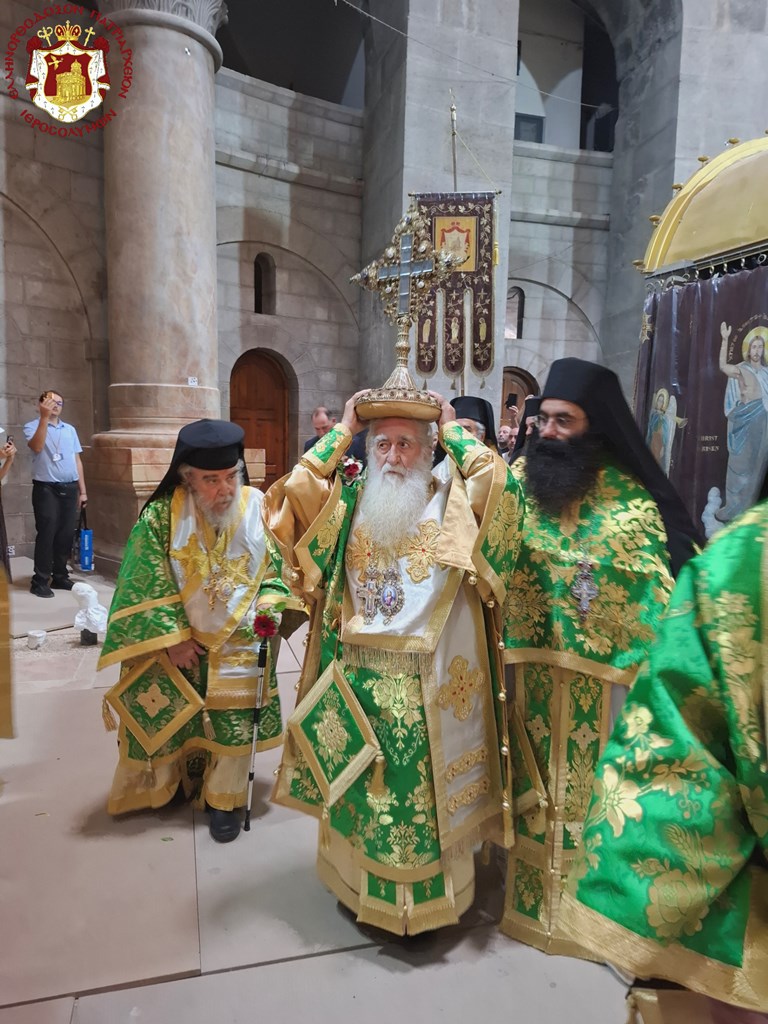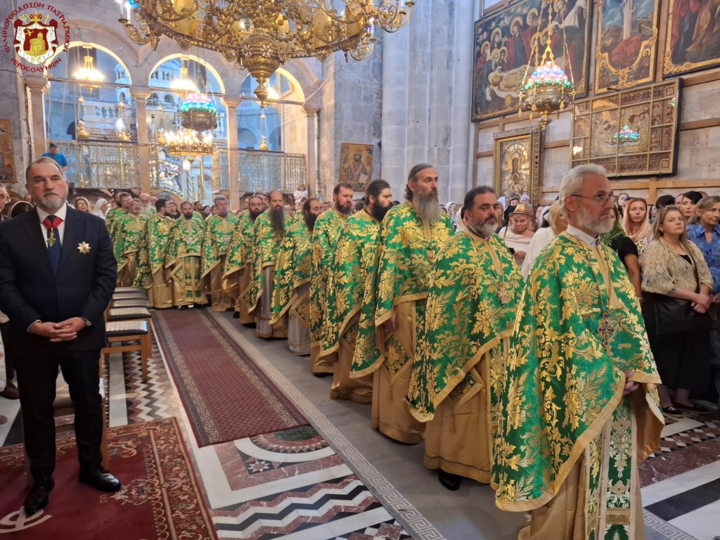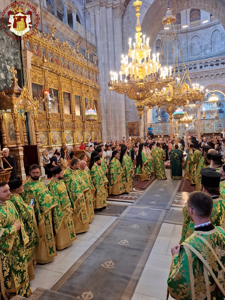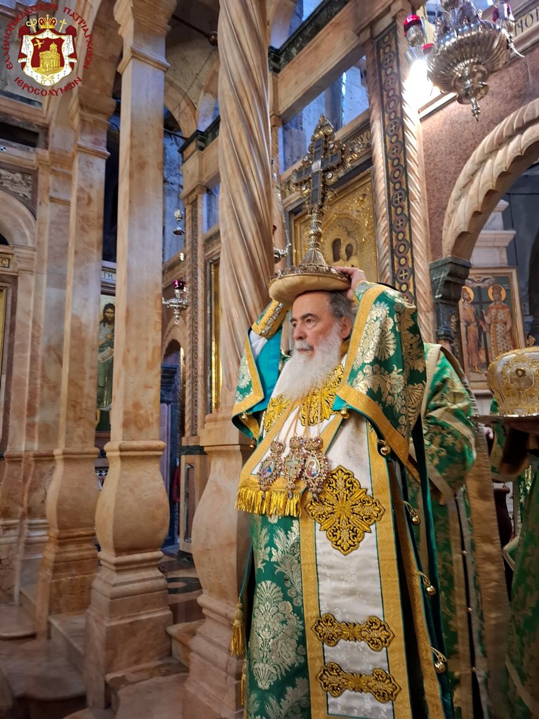 Σήμερον η αγία του Χριστού Εκκλησία και δή η των Ιεροσολύμων Εκκλησία εορτάζει την Παγκόσμιον Ύψωσιν του Τιμίου και Ζωοποιού Σταυρού. Διό και Ημείς μετά της Γεραράς Αγιοταφιτικής ημών Αδελφότητος ετελέσαμεν Πατριαρχικήν θείαν Λειτουργίαν εν τώ Πανιέρω Ναώ της Αναστάσεως, εν τώ τόπω δήλονότι της σταυρώσεως, της τριημέρου ταφής και της Αναστάσεως του Θεού και Σωτήρος ημών Χριστού.