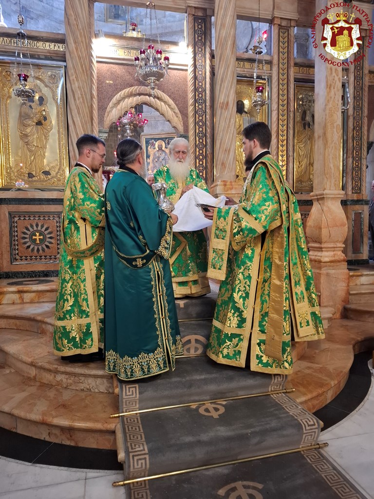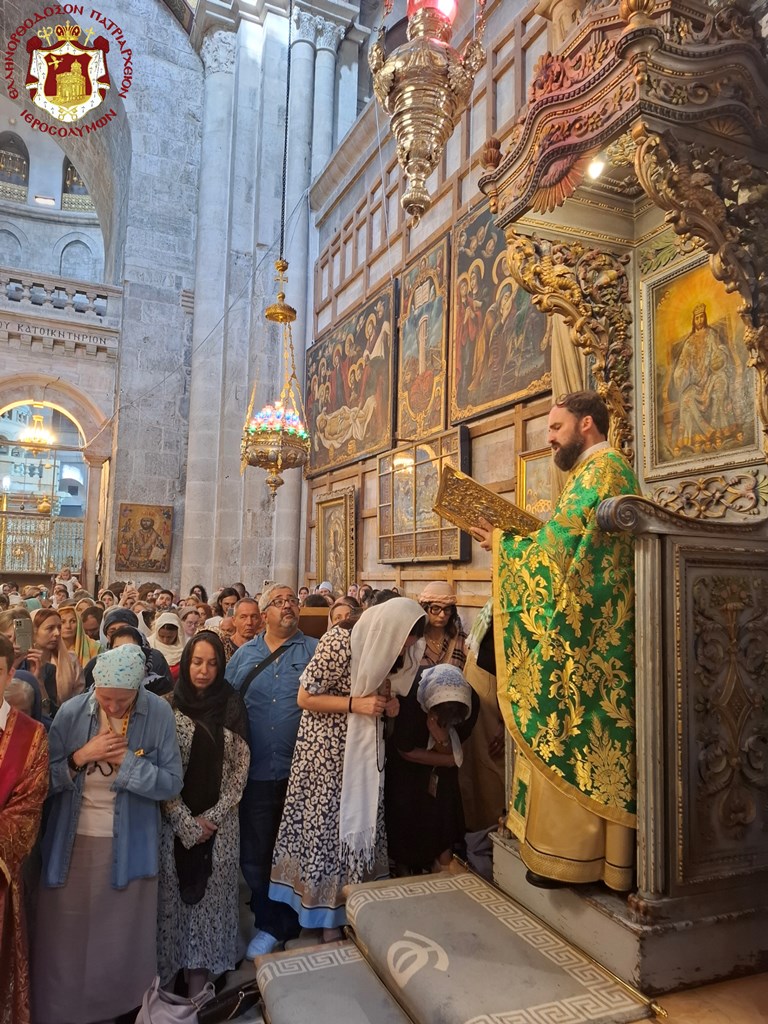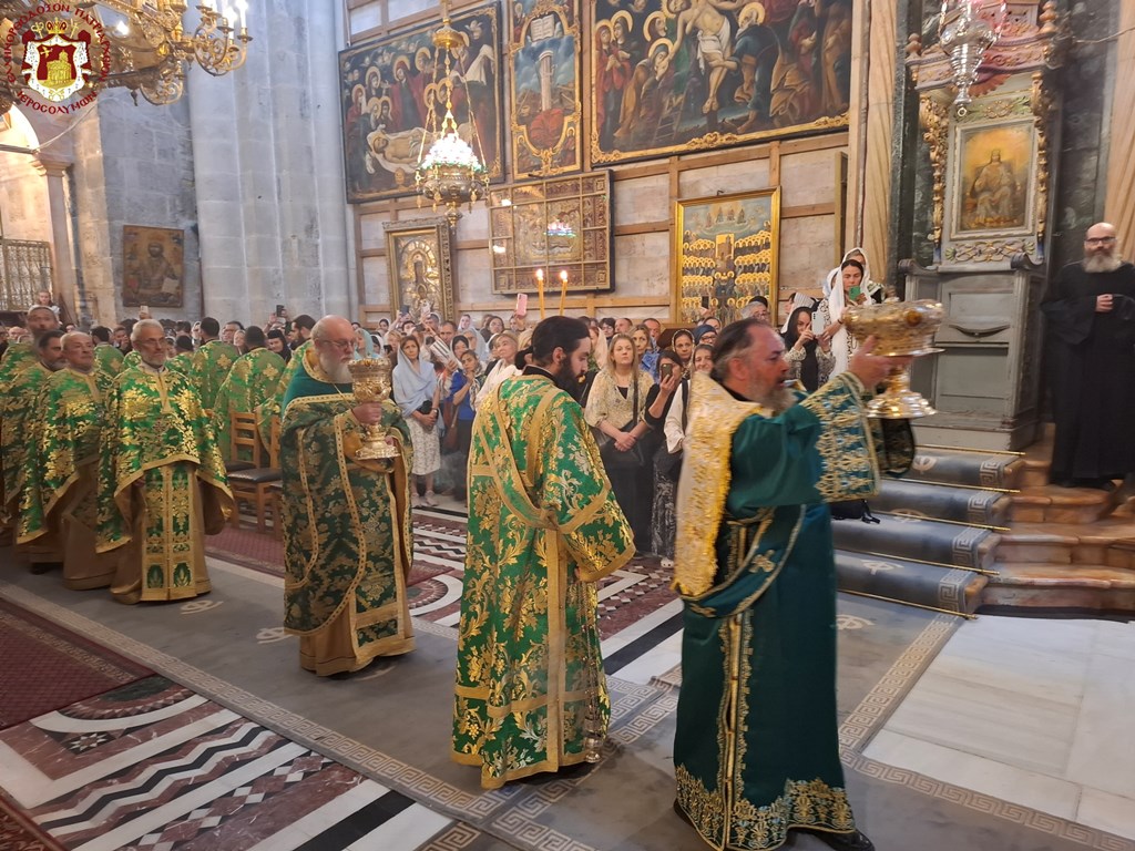 Την ημέρα της εορτής τελέστηκε Θεία Λειτουργία στο Καθολικό του Πανίερου Ναού της Αναστάσεως, προεξάρχοντος του Πατριάρχου Ιεροσολύμων κ. Θεοφίλου Γ΄. Συλλειτούργησαν οι αρχιερείς του Πατριαρχείου: ο Μητροπολίτης Καπιτωλιάδος κ. Ησύχιος, οι Αρχιεπίσκοποι Γεράσων κ. Θεοφάνης, Αβήλων κ. Δωρόθεος, Κωνσταντίνης κ. Αρίσταρχος, Θαβωρίου κ. Μεθόδιος, Σεβαστείας κ. Θεοδόσιος, Λύδδης κ. Δημήτριος, Πέλλης κ. Φιλούμενος και Καττάρων κ. Αριστόβουλος.