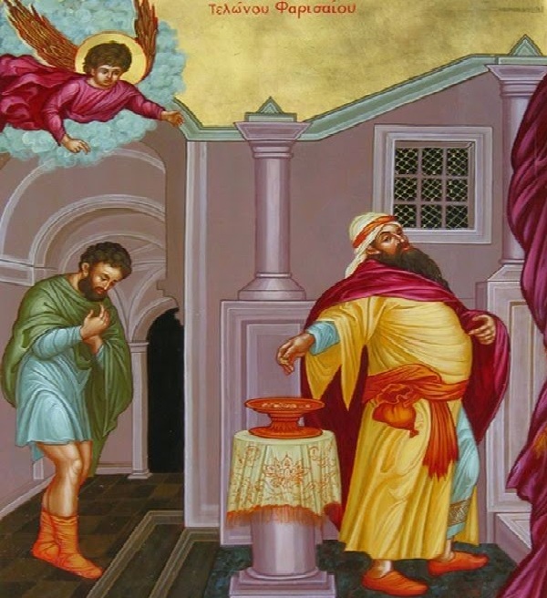 «Είπε δε και πρός τινας τους πεποιθότας εφ᾿ εαυτοίς ότι εισί δίκαιοι, και εξουθενούντας τους λοιπούς, την παραβολήν ταύτην· άνθρωποι δύο ανέβησαν εις το ιερόν προσεύξασθαι, ο είς Φαρισαίος και ο έτερος τελώνης. ο Φαρισαίος σταθείς προς εαυτόν ταύτα προσηύχετο· ο Θεός, ευχαριστώ σοι ότι ουκ ειμί ώσπερ οι λοιποί των ανθρώπων, άρπαγες, άδικοι, μοιχοί, η και ως ούτος ο τελώνης· νηστεύω δίς του σαββάτου, αποδεκατώ πάντα όσα κτώμαι. Και ο τελώνης μακρόθεν εστώς ουκ ήθελεν ουδέ τους οφθαλμούς εις τον ουρανόν επάραι, αλλ᾿ έτυπτεν εις το στήθος αυτού λέγων· ο Θεός, ιλάσθητί μοι τώ αμαρτωλώ. Λέγω υμίν, κατέβη ούτος δεδικαιωμένος εις τον οίκον αυτού η γάρ εκείνος· ότι πάς ο υψών εαυτόν ταπεινωθήσεται, ο δε ταπεινών εαυτόν υψωθήσεται». (Λουκ.18,10-14).