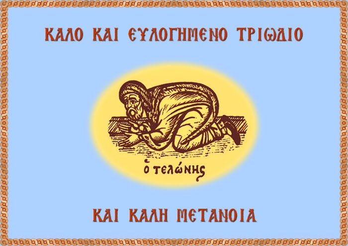Φαρισαίου φύγωμεν υψηγορίαν, και Τελώνου μάθωμεν, το ταπεινόν εν στεναγμοίς, προς τον Σωτήρα κραυγάζοντες· Ίλαθι μόνε ημίν ευδιάλλακτε.