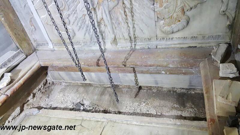 Ο λόγος για το άνοιγμα του Τάφου δεν ήταν κάποιο θρησκευτικό προσκύνημα, αλλά καθαρά τεχνικός: οι ειδικοί έπρεπε να κάνουν ενεματώσεις ενίσχυσης στην τοιχοποιία και υπήρχε ο φόβος να διαρρεύσουν υλικά σε ευαίσθητα σημεία. Έτσι πάρθηκε η απόφαση να αφαιρεθεί προσωρινά η πέτρα που σφράγιζε τον Τάφο από το 1810, όταν είχε ανεγερθεί το κουβούκλιο.